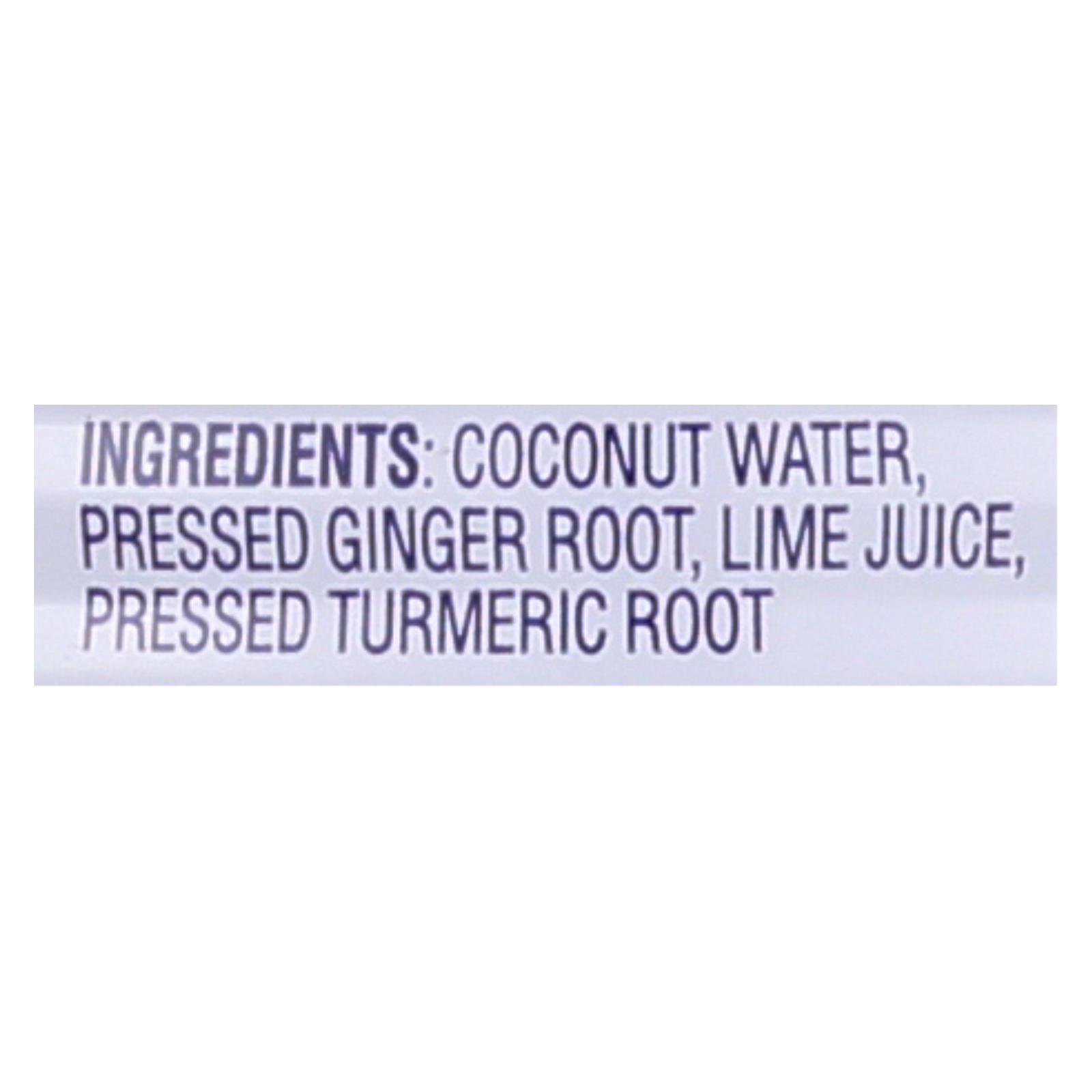 ingredients : coconut water;pressed ginger root;lime juice;pressed turmeric root