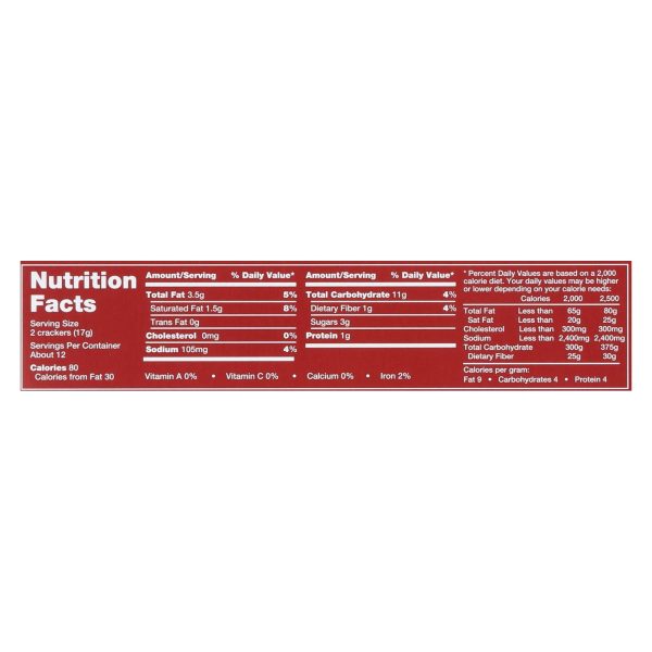 Carr’s whole wheat crackers get their thin and crispy texture from being baked in a traditional brick oven, in the same way they’ve been baked since the water crackers’ creation in the 1800s. The crackers were a success, carr’s thrived and became so popular that only 10 years later it was granted queen victoria’s royal warrant, an award that has been granted to carr’s by british royalty continuously since that time. Made with non-gmo ingredients and no artificial colors or flavors, there’s nothing to get in the way of enjoying a wide variety of toppings. Carr’s whole wheat crackers are packed in a 11 oz. Box with about 12 servings per box. Please see the nutrition facts panel for allergens.