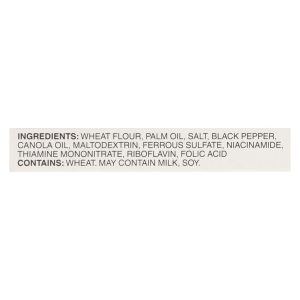 ingredients : wheat flour;palm oil;salt;black pepper;canola oil;maltodextrin;ferrous sulfate;niacinamide;thiamine mononitrate;riboflavin;folic acid