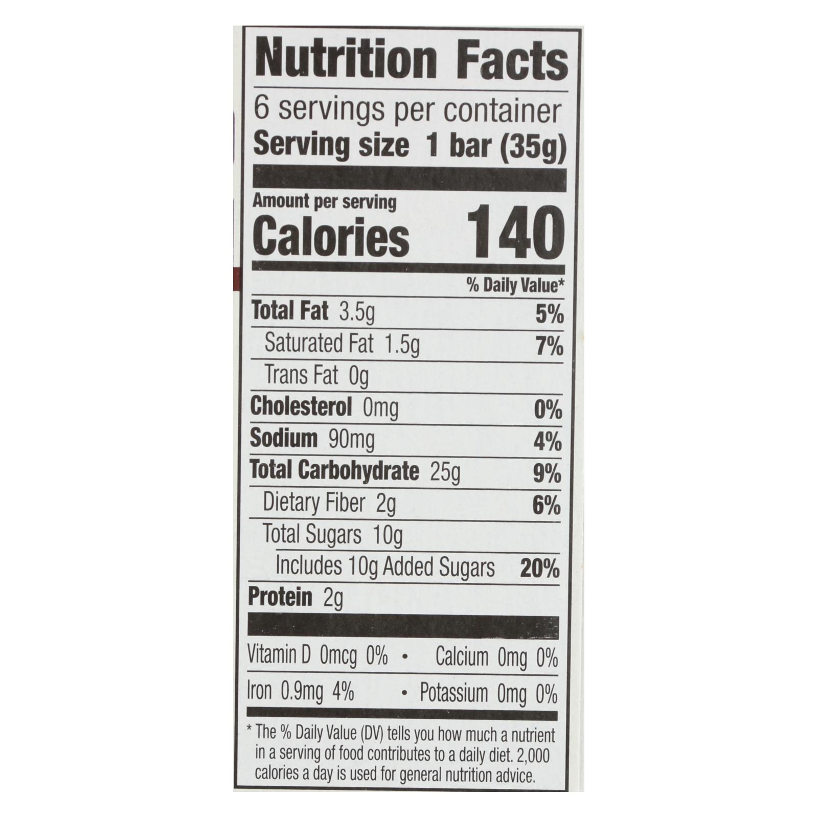 Cascadian farm chewy granola bars, chocolate chip are a healthy and delicious snack option. Made primarily from natural ingredients, cascadian farm chew granola bars are free of unnatural and unnecessary additives. This product is kosher, organic and whole-grain. This unit of cascadian farm chewy granola bars, chocolate chip contains six 140 calorie bars. See nutrition facts panel for allergens.