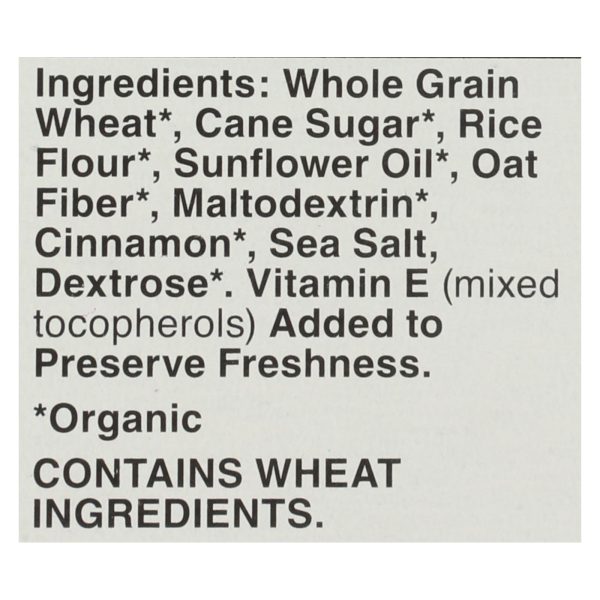 ingredients : whole grain wheat;cane sugar;rice flour;sunflower oil;oat fiber;maltodextrin;cinnamon;sea salt;dextrose;vitamin e (mixed tocopherols) added to preserve freshness