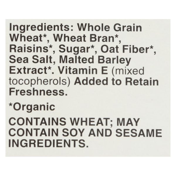 ingredients : whole grain wheat;wheat bran;raisins;sugar;oat fiber;sea salt;malted barley extract;vitamin e;mixed tocopherols;added to retain freshness