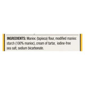 ingredients : manioc;tapioca;flour;modified manioc starch;100% manioc;cream of tartar;iodine-free sea salt;sodium bicarbonate