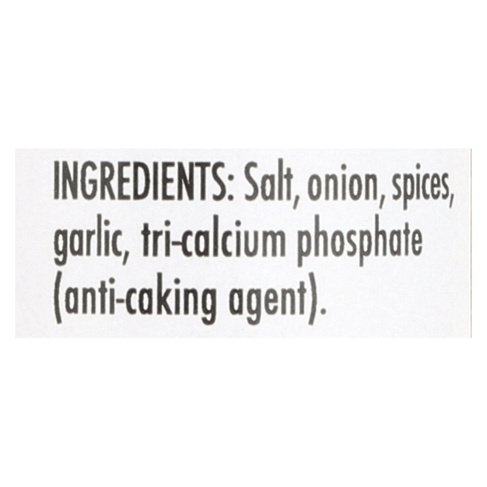 ingredients : salt;onion;spices;garlic;tri-calcium phosphate;anti-caking agent
