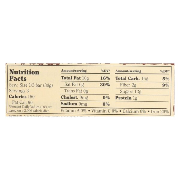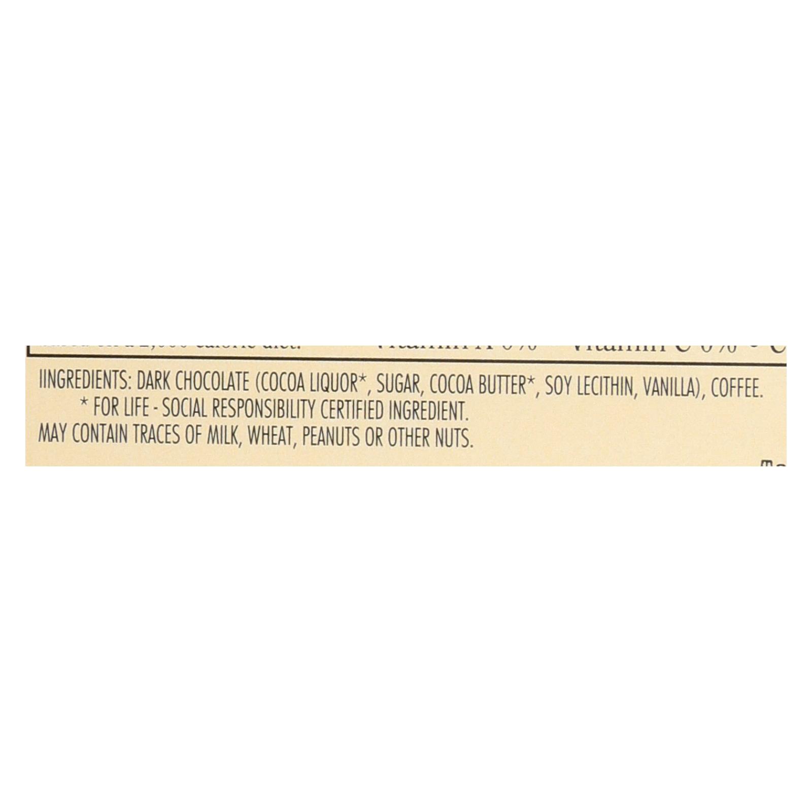 Chocolove coffee crunch in dark chocolate bar is a 3.2 oz. Bar of dark semisweet chocolate with roasted coffee bean bits. At first bite, the creamy dark chocolate gives way to crunchy bits of coffee bean, and the coffee bean continues to release flavor as you munch. Each 30 grams of chocolate equals about one cup of coffee. Our chocolate is made with cocoa certified by imo as for life, which means it was farmed in a socially responsible and ethical manner. All of the cocoa bean derived ingredients in this chocolate are certified for life. See the nutrition facts panel for allergens.