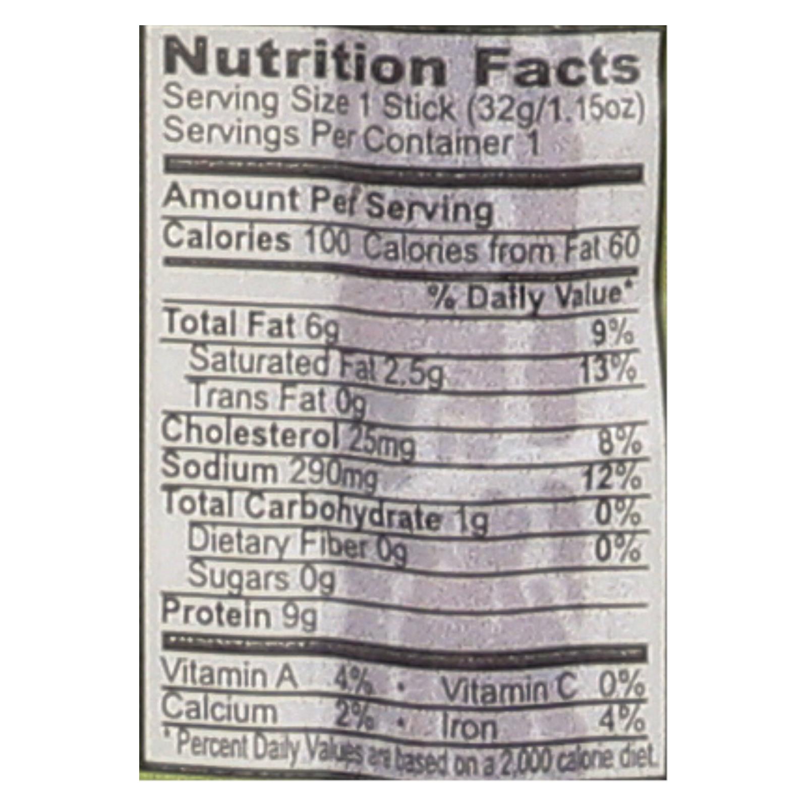 Chomps hoppin’ jalapeno grass fed beef stick snacks are made with 100 percent non-gmo ingredients, including grass-fed beef, sea salt and real (not powdered) peppers. This hearty jerky treats is seasoned with jalapeno, celery juice, coriander and garlic to ensure a savory, delicious flavor. One beef stick delivers 100 calories and 9 g. Of protein. Take a single wrapped chomps snack stick with you to enjoy anywhere, any time. This single beef stick comes in a 1.5 oz. Package.