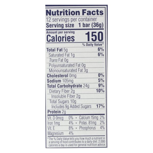 ingredients : organic oat blend (organic rolled oats, organic oat flour, organic oat fiber);organic tapioca syrup;organic cane syrup;organic fig paste;organic soy white chocolate (organic dried cane syrup, organic cocoa butter, organic soy flour, organic soy lecithin, organic vanilla extract);organic soy butter (organic roasted soybeans, organic soybean oil, salt);organic white coating (organic dried cane syrup, organic cocoa butter, organic soy lecithin, organic vanilla extract);organic milled flaxseed;organ