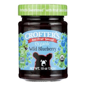 Crofter’s organic, wild blueberry just fruit spread is perfectly sweetened with fruit juice concentrate. This product contains a high fruit content of selected fruit varieties and only 30 calories per serving. Crofter’s organic, wild blueberry just fruit spread is a certified organic, non-gmo and gluten-free product. This 10 oz. Jar must be refrigerated and used within 20 days of opening. Please see nutritional fact panel for information concerning possible allergens or warnings associated with this product.