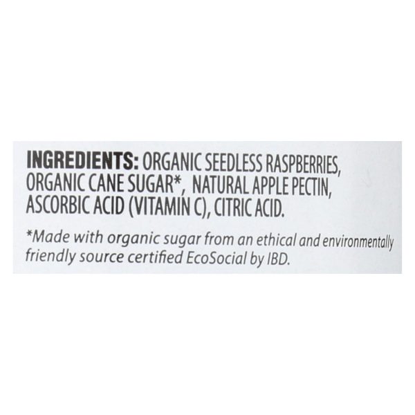 ingredients : organic seedless raspberry puree;organic cane sugar;pectin solution (water, apple pectin);ascorbic acid (vitamin c);citric acid