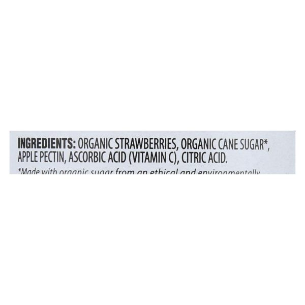 ingredients : organic strawberries;organic cane sugar;pectin solution (water, apple pectin);ascorbic acid (vitamin c);citric acid