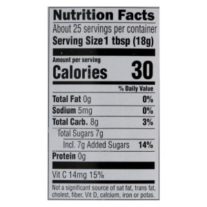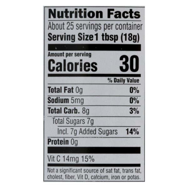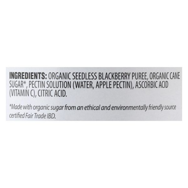 ingredients : organic seedless blackberry puree;organic cane sugar;pectin solution (water, apple pectin);ascorbic acid (vitamin c);citric acid