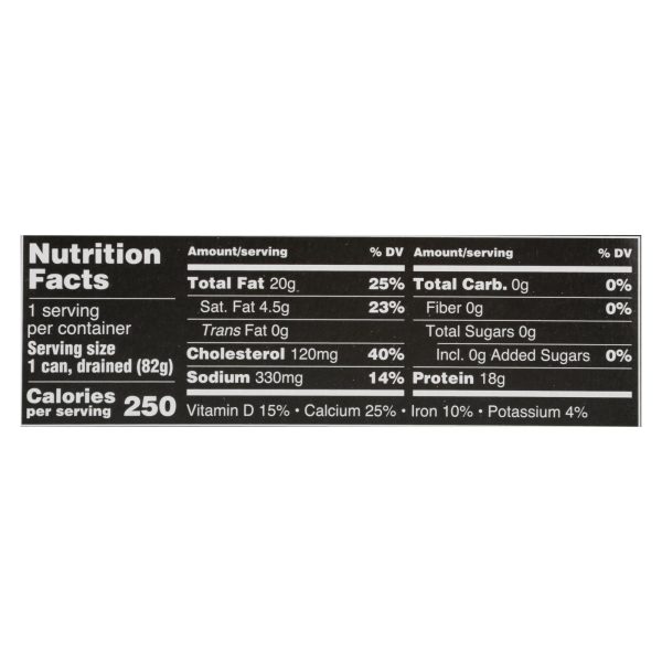 ingredients : naturally wood smoked brisling sardines;extra virgin olive oil;sea salt