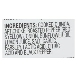 ingredients : cooked quinoa;artichoke;roasted pepper (red & yellow);onion;sunflower oil;lemon juice;salt;garlic;parsley;lactic acid;citric acid and black pepper