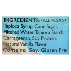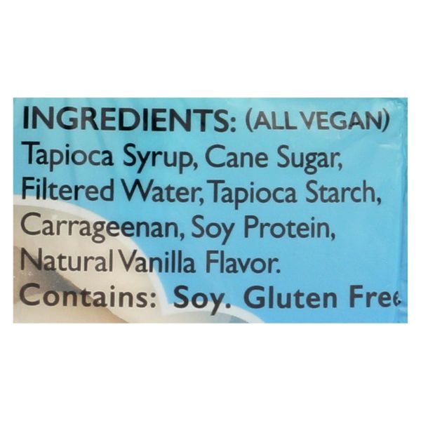ingredients : all vegan;tapioca syrup;cane sugar;filtered water;tapioca starch;carageenan;soy protein;natural vanilla flavor