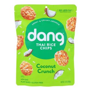 Dang coconut crunch sticky-rice chips are a tasty, gluten-free and vegan snack you can take with you everywhere you go. These rice chips are non-gmo and don’t contain any additives or preservatives. They are also dairy and soy free. These sticky rice crackers are made with thai rice grains and have 40% less fat than potato chips. See nutrition facts panel for allergens. Includes one 3.5 oz. Bags of dang coconut crunch sticky rice chips. At dang, we love delicious nutritious snacks and travel, which inspire all of our creations. Our mission is to delight by reinventing whole foods into dang-worthy snacks.