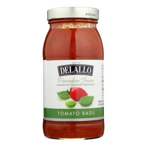 Delallo pomodoro fresco tomato basil sauce is authentic italian sauce made with plum red tomatoes, extra virgin olive oil, spices and fragrant basil. Simmered in small batches, our handcrafted pasta sauces capture the heart of authentic italian cuisine, fresh, simple ingredients. Each jar contains 25.25 oz. Of savory tomato sauce, providing a lush tomato and basil experience that is perfect with lasagna, chicken parmesan, manicotti, polenta, and much more. This sauce is great with anything that calls for a touch of tomato and basil. See nutrition facts panel for allergens.