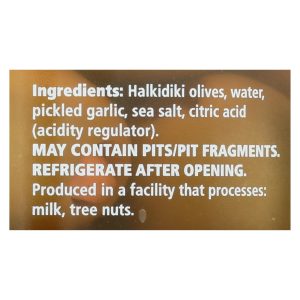 ingredients : halkidiki olives;water;pickled garlic;sea salt;citric acid;acidity regulator