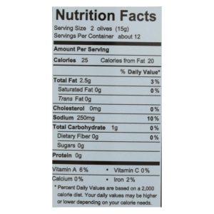 Divina, olives, stuffed with jalapeno peppers are organic and non-gmo. This product comes to you in a convenient, easy-to-open 13.4 oz. Glass jar. Each two olive serving contains 25 calories and 3% of recommended daily value of fat. Divina, olives, stuffed with jalapeno peppers are a great addition to any meal, snack or vegetable tray.