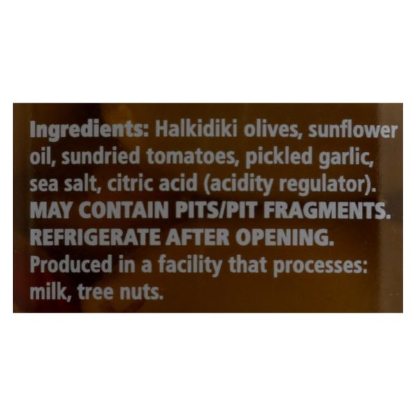 ingredients : halkidiki olives;sunflower oil;sundried tomatoes;pickled garlic;sea salt;citric acid;acidity regulator