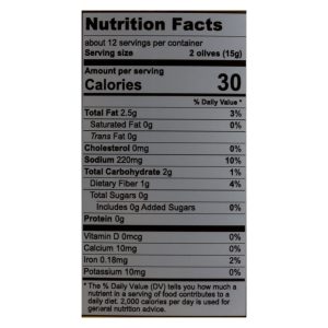 Divina, olives, stuffed with sun-dried tomatoes are organic and non-gmo. This product comes to you in a convenient, easy-to-open 12.9 oz. Glass jar. Each two olive serving contains 30 calories and 4% of recommended daily value of fiber. Divina, olives, stuffed with sun-dried tomatoes are a great addition to any meal, snack or vegetable tray.