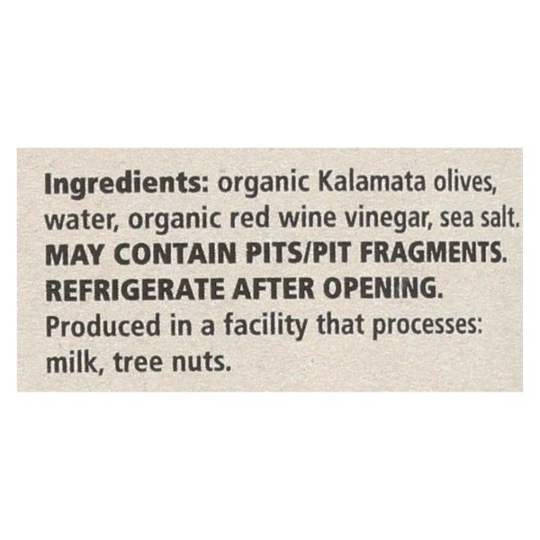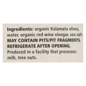 ingredients : organic kalamata olives;water;organic red wine vinegar;sea salt