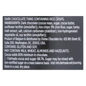 Divine – Crisp Thns Dark Chocolate – Case Of 12 – 2.8 Oz