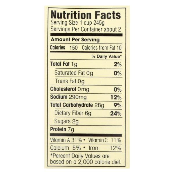 Dr. Mcdougall’s black bean soup is a healthy, delicious and convenient meal option. Made with natural ingredients, this soup is free of unnatural and unnecessary additives. This product is gluten-free, organic and made using sustainable methods. Each carton of dr. Mcdougall’s black bean soup contains 18 oz. Of soup. Shake before use and refrigerate after opening. See nutrition facts panel for allergens.