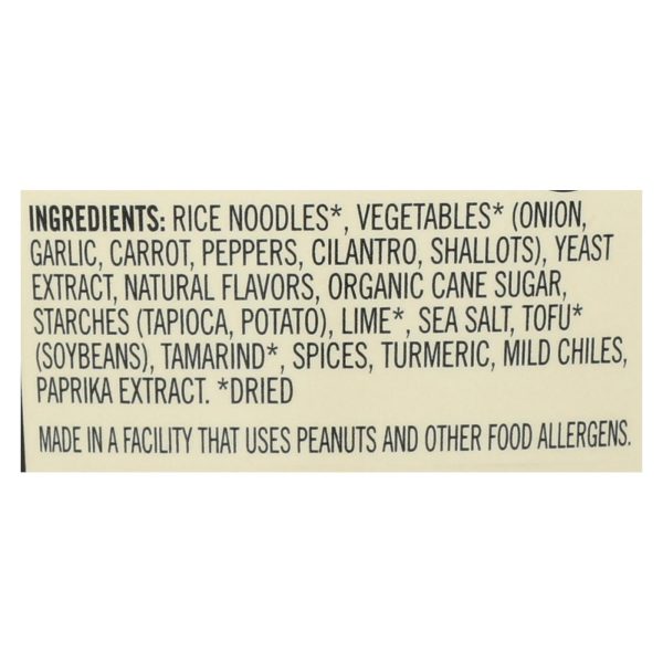 ingredients : rice noodles;vegetables;onion;garlic;carrot;peppers;cilantro;shallots;yeast extract;natural flavors;organic cane sugar;starches;tapioca;potato;lime;sea salt;tofu;tamarind;spices;turmeric;mild chiles;paprika extract