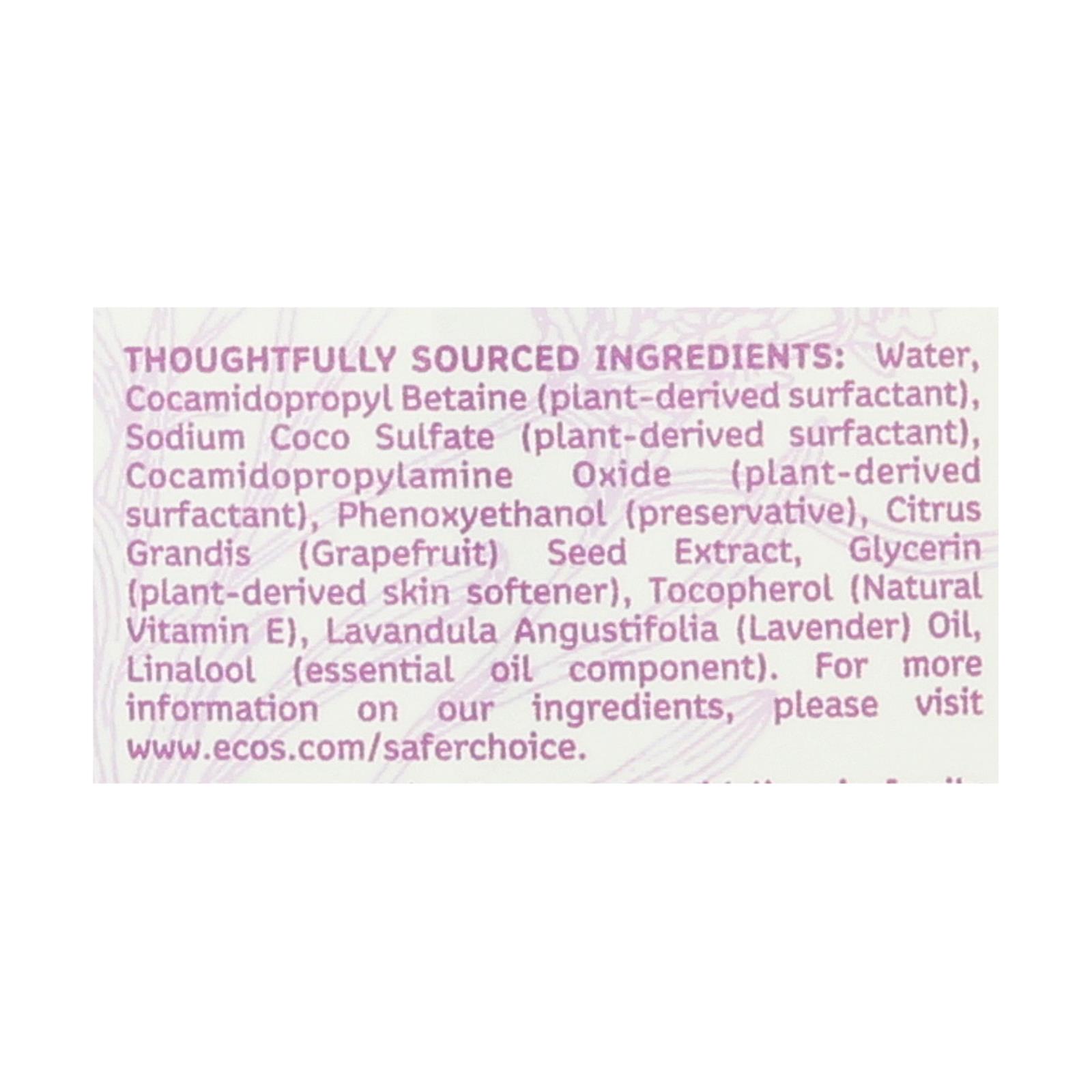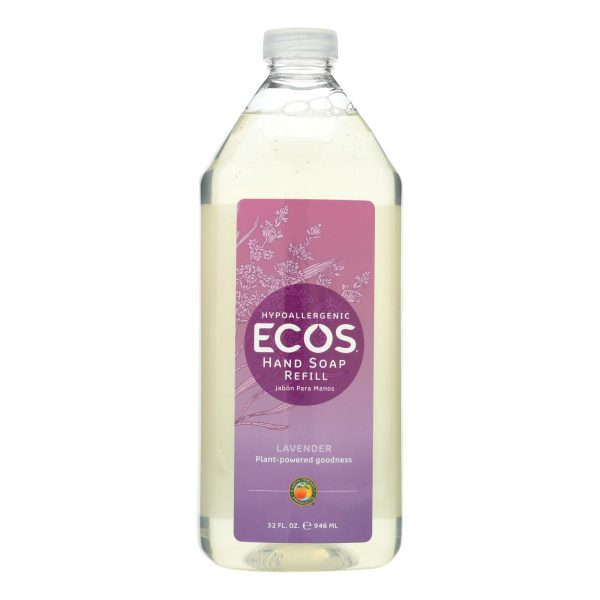 Ecos hand soap, lavender is made with hypoallergenic, natural ingredients, is biodegradable and never tested on animals. Made to inspire your senses, ecos hand soap nourishes as it cleanses. For a fresh clean, work into a rich lather and rinse. This soap is made with coconut derived products, grapefruit seed extract and other natural ingredients and comes in a 32 fl. Oz. Bottle. See the facts label for allergens and warnings.