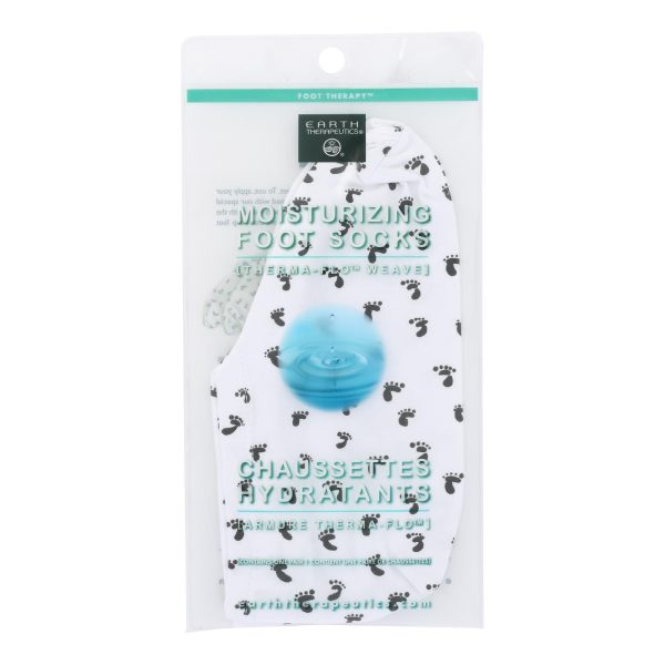 Earth Therapeutics Moisturizing Foot Sock – White With Footprints – 1 Pair