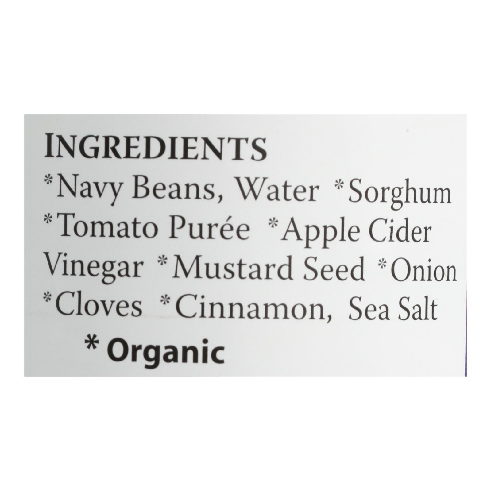 ingredients : navy beans;water *sorghum;tomato puree *apple cider vinegar *mustard seed *onion *cloves *cinnamon;sea salt