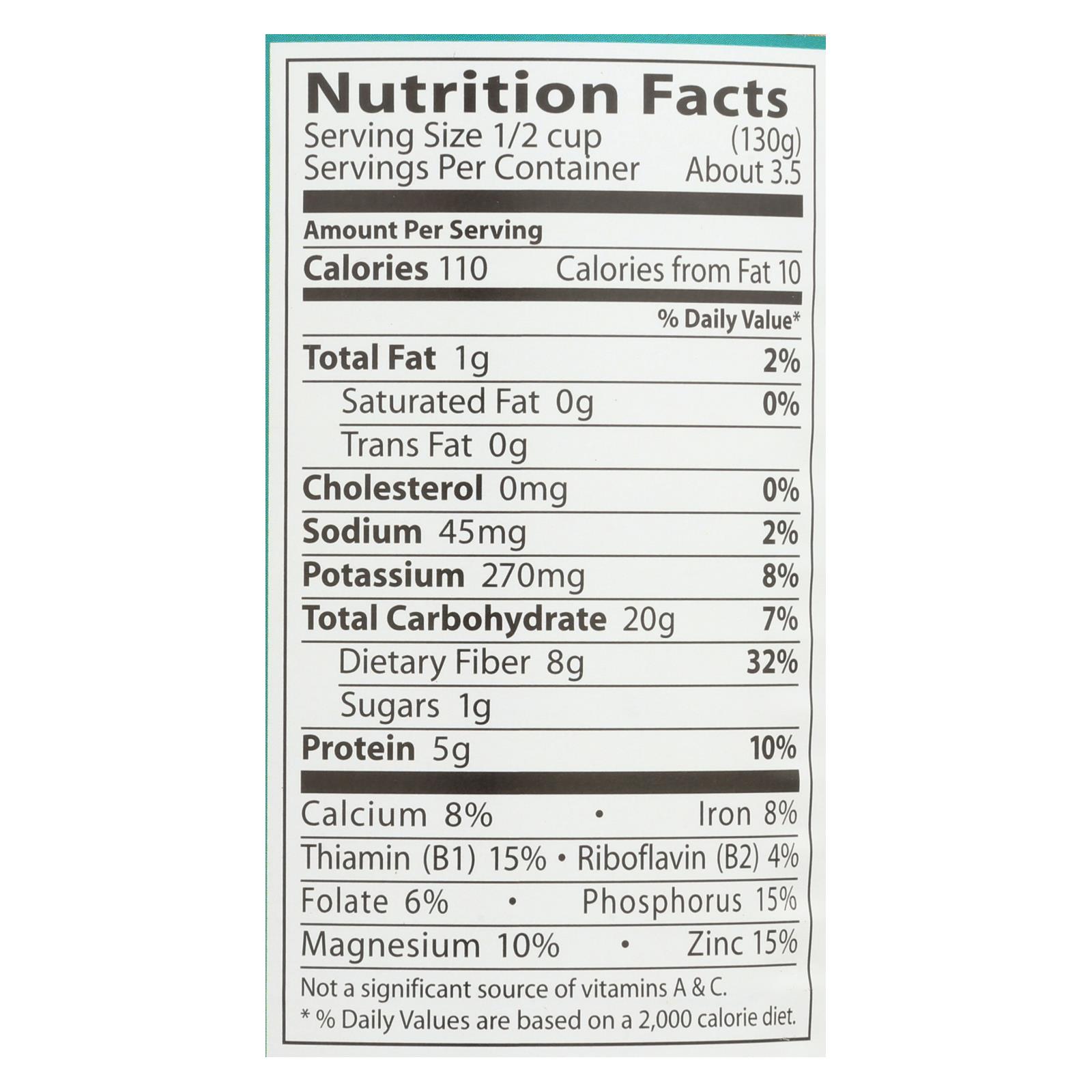 Eden organic no salt added great northern beans offers the subtle savory flavor of heritage white beans grown by family farms in the usa. Each can includes water and kombu seaweed to add taste without adding additional salt. One half-cup serving has 110 calories and 5 g. Of protein. Use in soups, salads or in pasta for a dose of dietary fiber. This can contains 15 oz. Of great northern beans.