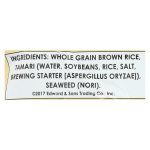 ingredients : whole grain brown rice;tamari;water;soybeans;rice;salt;brewing starter [aspergillus oryzae];seaweed;nori
