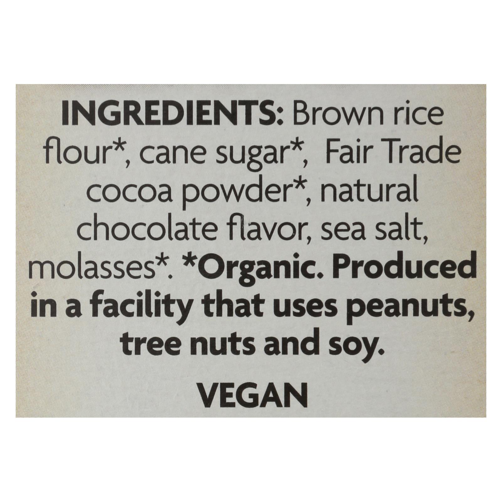 ingredients : brown rice flour;cane sugar;fair trade cocoa powder;natural chocolate flavor;sea salt;molasses