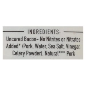ingredients : uncured bacon- no nitrites or nitrates added;pork;water;sea salt;vinegar;celery powder;natural*** pork