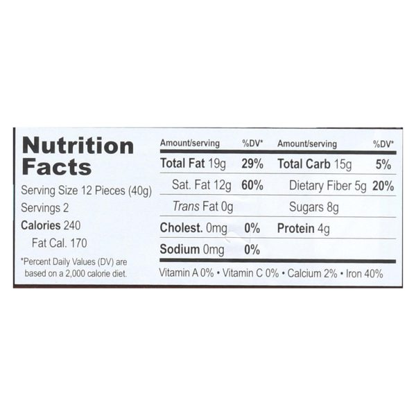 Small farmer chocolate bar, panama extra dark is a rich and luxurious chocolate bar. Made with natural ingredients, this chocolate is free of unnatural and unnecessary additives. This product is kosher and organic. Each small farmer chocolate bar, panama extra dark weighs 2.8 oz. With two servings per bar and 240 calories per serving.