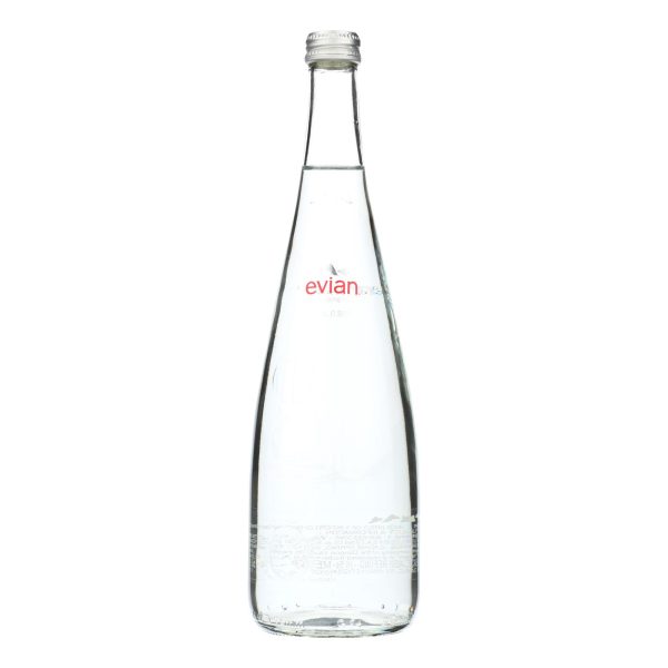 Evian spring water is a natural product. This spring water comes packaged in one 50 ml. Recyclable bottle, which is 3.3 in. Wide and 11.75 in. Tall. The bottle and water weigh 2.51 lbs. This spring water is a product of france, is bottled at the cachat spring and then imported by danone waters of america, inc.