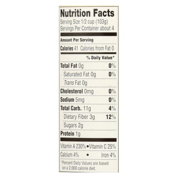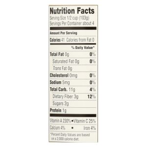 Farmer’s market organic butternut squash is a 100% usda-certified organic product. This butternut squash comes packed in one 15 oz. Can and is verified non-gmo. This certified kosher-parve product contains 0 g. Of trans fat, saturated fat and cholesterol. Each serving has 3 g. Of dietary fiber and just 41 calories.