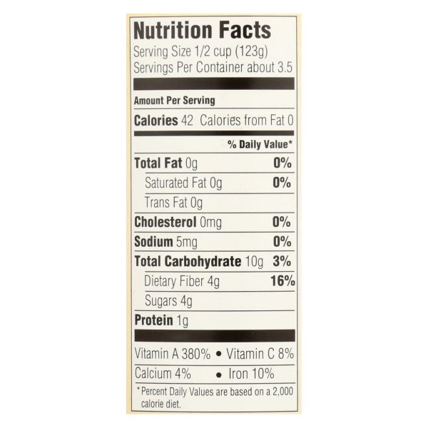 Farmer’s market organic pumpkin is great for baked goods such as pumpkin pie, cookies, sweet rolls, muffins, breads, cakes and more. With only certified organic pumpkin, this product is kosher and non-gmo. The can liner is also bpa free. Each can of farmer’s market organic pumpkin contains 15 oz. Of product.