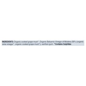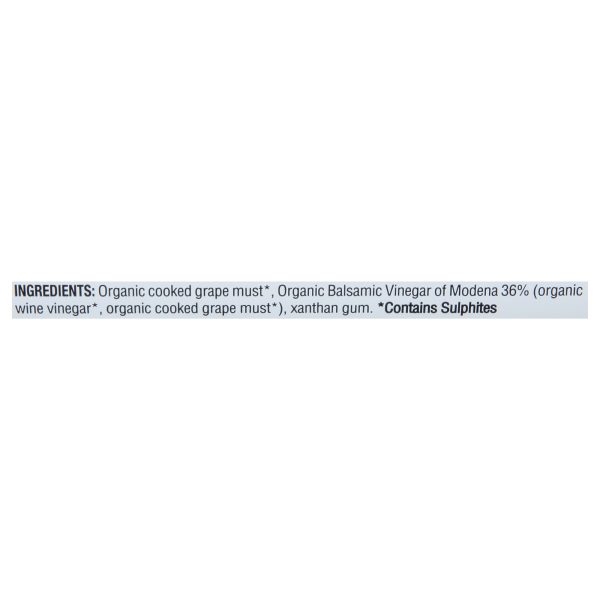 ingredients : organic cooked grape must;organic balsamic vinegar of modena 36% (organic wine vinegar*, organic cooked grape must*);xanthan gum