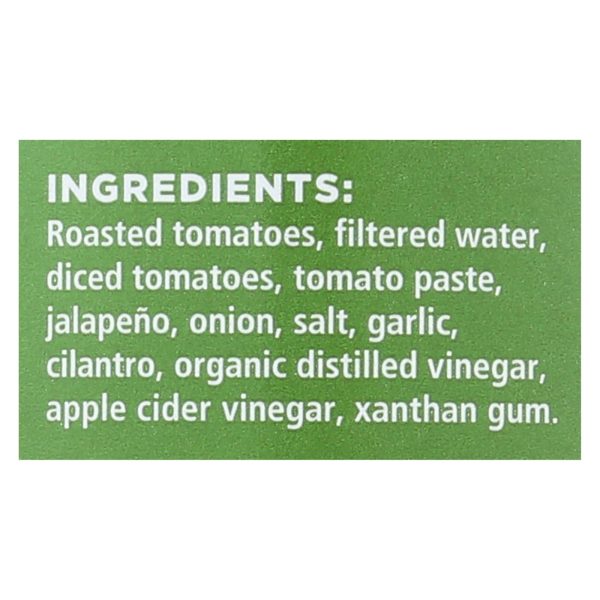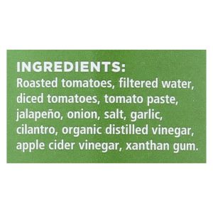 ingredients : roasted tomatoes;filtered water;diced tomatoes;tomato paste;jalapeño;onion;salt;garlic;cilantro;organic distilled vinegar;apple cider vinegar;xanthan gum