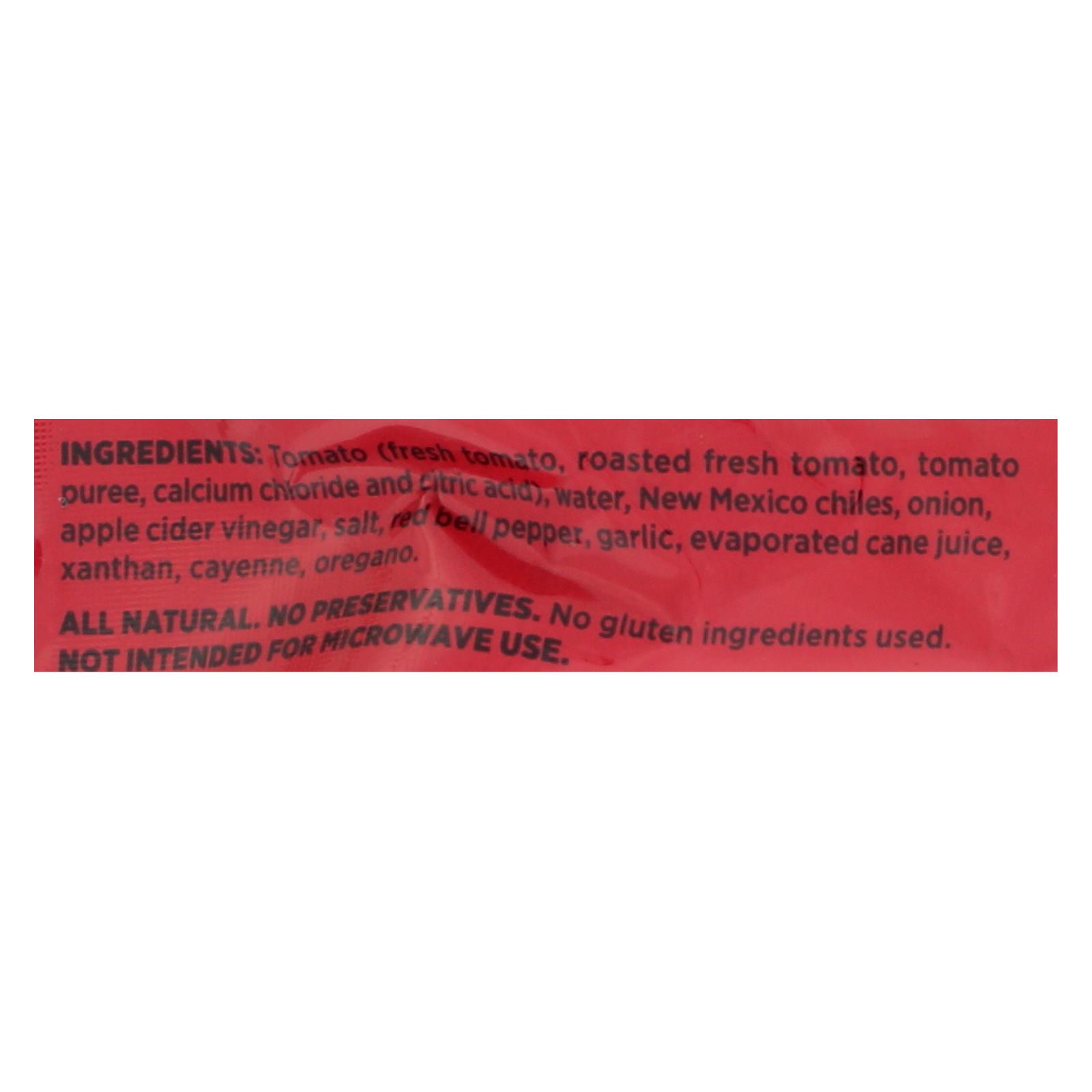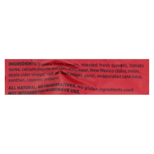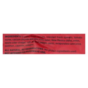ingredients : tomato;fresh tomato;roasted fresh tomato;tomato puree;calcium chloride and citric acid;water;new mexico chiles;onion;apple cider vinegar;salt;red bell pepper;garlic;evaporated cane juice;xanthan;cayenne;oregano