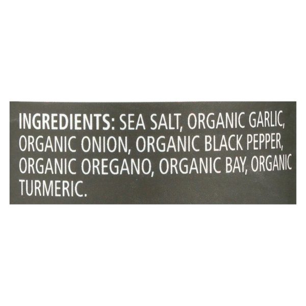 ingredients : sea salt;organic garlic;organic onion;organic black pepper;organic oregano;organic bay;organic turmeric