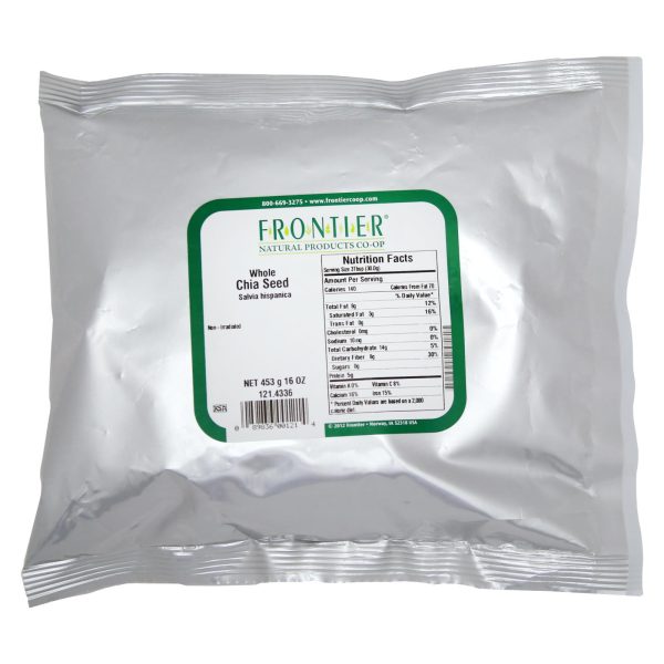Frontier natural products co-op whole chia seeds have a neutral flavor that makes them an excellent addition to breakfast, lunch or dinner entrees. Add them as a topping to yogurt and ice cream, or blend into your favorite smoothie for added nutrition. Each 16 oz. Bag of chia seeds contains whole seeds contains 14 g. Of carbohydrates and 8 g of total fat per serving.