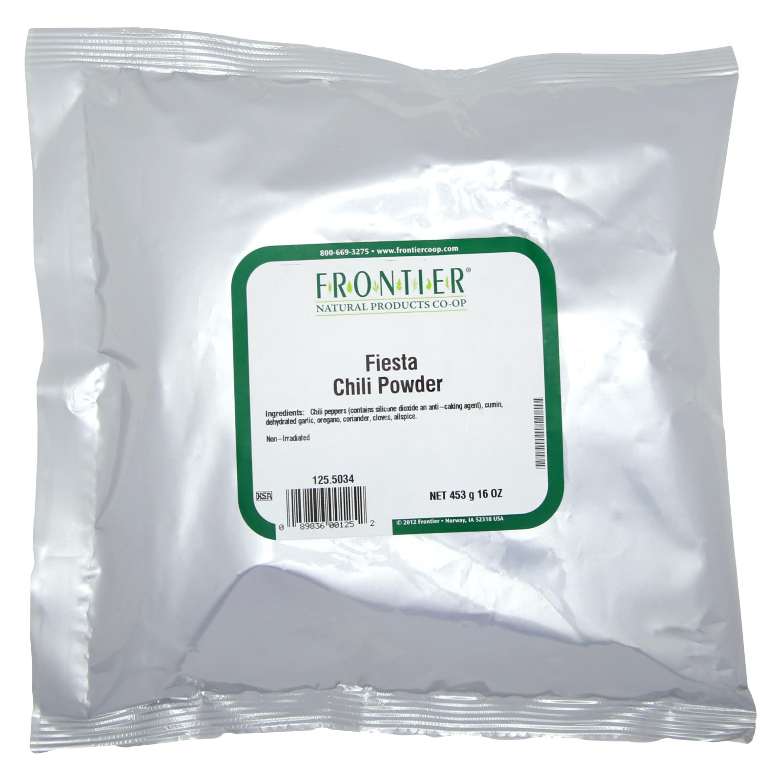 Frontier natural products co-op fiesta chili powder is a flavorful blend of chili peppers and zesty spices. Our kosher and salt-free mix of seasoning adds zest and robust taste to a variety of spanish, indian and asian cuisine without adding to your sodium intake. This bag contains 16 oz. Of of chili powder.