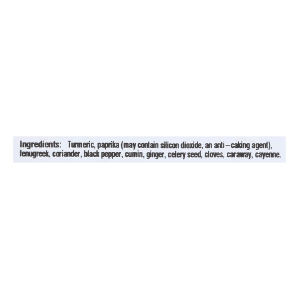 ingredients : turmeric;paprika (may contain silicon dioxide, an anti-caking agent);fenugreek;coriander;black pepper;cumin;ginger;celery seed;cloves;caraway;cayenne