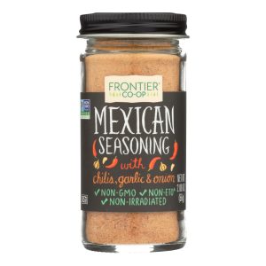 Frontier co-op mexican seasoning blend is never tested on animals. This product has a great flavor of chilis, garlic and onion for your next taco tuesday or burrito night. Frontier co-op mexican seasoning blend comes packaged for your convenience in an easy-to-open jar and contains 2 oz. Of product. This product non-gmo project verified and considered kosher.