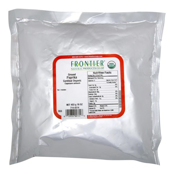 Frontier natural products co-op certified organic ground paprika is the perfect addition to a chicken or fish marinade or as the topping for deviled eggs or potato salads. Made from dried ground chiles, our paprika contains 0 calories per serving so you can generously pour it on your favorite foods. This package contains 16 oz. Of ground paprika.