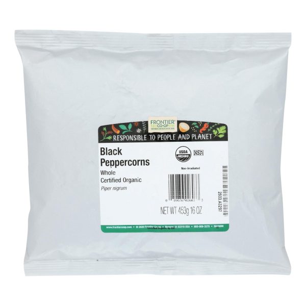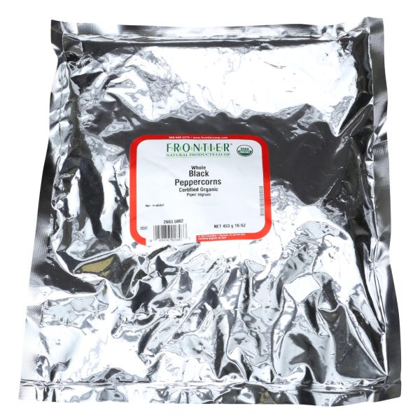 Frontier Herb Peppercorns Organic Whole Black – Single Bulk Item – 1lb
