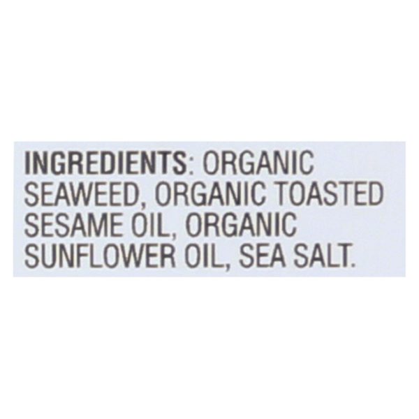 ingredients : organic seaweed;organic toasted sesame oil;organic sunflower oil;sea salt